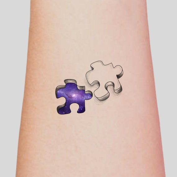 Puzzle Set Of 2 Puzzle Piece Space Tattoo Temporary Etsy